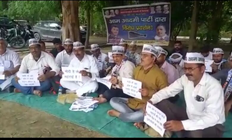 बढ़ती मंहगाई के विरोध में आप कार्यकर्ताओं ने भाजपा के खिलाफ किया धरना प्रदर्शन