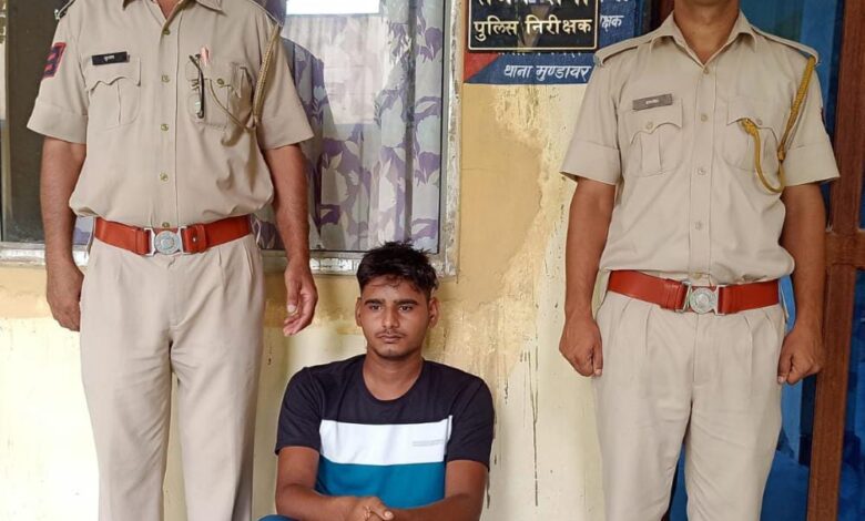 मुंडावर/थानाधिकारी संजय शर्मा ने बताया पुलिस अधीक्षक भिवाड़ी के मिशन हंड्रेड के तहत अवैध हथियारों के विरुद्ध प्रभावी कार्रवाई करते हुए ,बालकृष्ण उर्फ गोलू पुत्र वीरसिंह यादव निवासी मुंडियाखेड़ा थाना मुंडावर की गठित टीम ने अवैध देशी पिस्टल 32 बोर सहित किया गिरफ्तार।आरोपी के कब्जे से एक देसी पिस्टल 32 बोर व तीन जिंदा कारतूस किए बरामद।