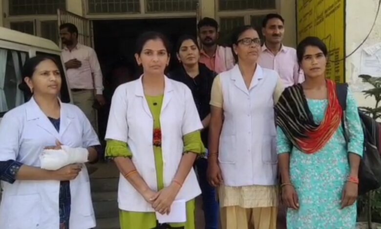 आउटसोर्सिंग स्टाफ नर्सो ने किया सीएमओ बागपत में धरना प्रदर्शन